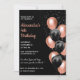 Rose gold 4th birthday invitation Balloon Black Pink glitter modern glam sparkle calligraphy typography feminine milestone classic elegant