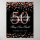 Rose Gold 50th Birthday Glitter Confetti Black Poster