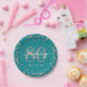 Rose Gold 80th Birthday Glitter Confetti Teal Paper Plate