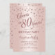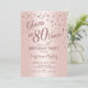 Elegant design with faux glitter rose gold and foil effect. Sparkly glitter diamonds confetti and stylish script font invite card. Glam blush pink and white. Cheers to 80 Years! Please message me if you need further customization.