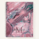 Rose Gold Agate Geode Chic Sparkle Monogram Spiral Notebook with marble swirls of teal, turquoise, rose gold, and mauve plum, along with the sparkle of faux glitter sprinkled on top. Add your initial for a truly custom design. Perfect for your chic aesthetic.