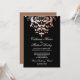 This invitation highlights classic damask design and features a contemporary black background and rose gold highlights. Bold and elegant it is the invitation for a special couple that commands attention.