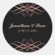 Rose Gold and Black, Elegant Personalised Wedding Classic Round Sticker