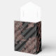Elegant favour box featuring rose gold damask and black striped patterns.