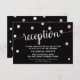 This rose gold and black glam wedding reception insert card is perfect for a sophisticated or evening wedding. The design features beautiful faux rose gold foil modern calligraphy and confetti on a black background for a bold glitz and glam look. Personalise this detail enclosure card with your reception information and include your wedding website address too!