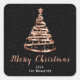 Rose Gold and Black Ribbon Tree Merry Christmas Square Sticker