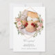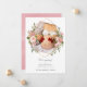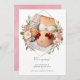 Blush pink and rose gold rose watercolor floral pregnancy announcement photo card with a gold geometric frame. A square shaped photo is recommended.