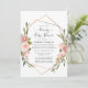 Blush pink and rose gold rose watercolor drive through bridal or baby shower invitation with a gold geometric frame.