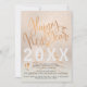 New Year's Eve party glam invitation card featuring a trendy metallic copper hand lettered "Happy New Year" typography script and white diamonds over a pale rose gold shiny faux foil background. +++++++++++ Personalise it with the year and your party details! ++++++++++ Suitable for both personal family and business corporate events.