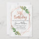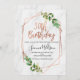 Foliage, faux rose gold line art and marble 30th birthday invitation. This design features a brush calligraphy heading in faux rose gold foil that can't be altered and some green foliage. The background is a white marble image. This marbel and faux rose gold line art 30th birthday invitation is easy and ready to be personalised.