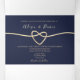 Simple, elegant, minimal rose gold and navy blue wedding tri-fold invitation, with beautiful gold foil rope heart and picture of the couple.