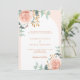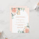 An elegant wedding invitation. A rose gold background, and a white coloured arch. Decorated with watercolored roses and eucalyptus greenery.
