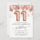 Rose Gold Balloons 11th Birthday Party Confetti Invitation
