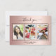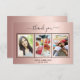 A glamourous 21st birthday (or andy age) Thank You card personalised with your own photo. Add 3 of Your birthday photos, vertical size, a date, name, and the thank you note. A trendy rose gold background with black text and frame. The text: Thank you on the front and your names on the back are written with a stylish hand lettered script with swashes.