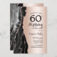 Black and rose gold agate 60th birthday party invitation. Elegant modern design featuring rock stone marble geode background, faux glitter rose gold and typography script font. Trendy invite card perfect for a stylish women's bday celebration. Printed Zazzle invitations or instant download digital printable template.
