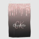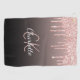 A black, brown, caffe latte gradient background decorated with rose gold faux glitter drips, paint dripping look. Personalise and add a name, your monogram initials. The name is written with a hand lettered style script.