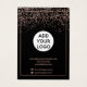 Modern rose gold confetti and geometric border on editable black jewellery earring display with hole markers that you can move around or delete. Add your logo.