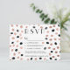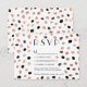 An original, modern faux rose gold foil and black watercolor hand drawn polka dots rsvp wedding card on a white customisable background. Perfect for elegant, chic and modern wedding themes