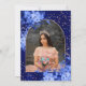 Featuring pretty floral and botanical bouquet with rose gold glitter confetti and a modern glitter arch shape, with an elegant script typography Quinceañera birthday with hand painted princess gown deep blue watercolor with glitter. Add your photo at the back. perfect Mis Quince birthday party with a rose gold princess tiara crown.