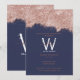 A rose gold blush pink navy blue girly glitter dust design with customised monogram and name. Ideal gift for sparkle and glitter lovers. The perfect chic pink glamourous birthday invitation design ideal for any age. Please view our collection for matching party decor and favours.