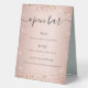 A rose gold, blush gradient background decorated with faux glitter, sparkles. With the text: Open bar. Personalise and add your bar menu.