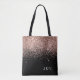 Rose Gold Blush Pink Black Glitter Monogram Tote Bag