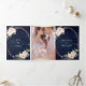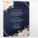 Rose Gold Blush Pink Floral QR Code Navy Wedding Tri-Fold Invitation