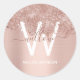 Rose Gold Blush Pink Girly Glitter Dust Monogram Classic Round Sticker