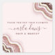 Rose Gold Blush Pink Glitter Agate Geode Luxe Thank you For Your Business Square Sticker. Perfect for makeup artists, hair stylists, cosmetologists, and more!