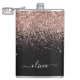 Rose Gold Blush Pink Glitter Custom Monogram Name Hip Flask