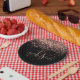 Glam Rose Gold Glitter Elegant Monogram Paper Plate. Easily personalize this trendy chic paper plate design featuring elegant rose gold sparkling glitter on a black background. The design features your handwritten script monogram with pretty swirls and your name.