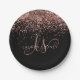 Rose Gold Blush Pink Glitter Glam Monogram Name Paper Plate