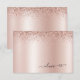 Rose Gold - Blush Pink Faux Foil Metallic Sparkle Glitter Brushed Metal Heart Monogram Name Note Card. This makes the perfect sweet 16 birthday, wedding, bridal shower, anniversary, baby shower or bachelorette party gift for someone that loves glam luxury and chic styles.