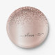 Rose Gold - Blush Pink Glitter Metal Monogram Name Paper Plate