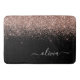 Black and Rose Gold - Blush Pink Faux Sparkle Glitter Script Monogram Name Bath Mats. This makes the perfect graduation, birthday, wedding, bridal shower, anniversary, baby shower or bachelorette party gift for someone that loves glam luxury and chic styles.