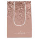 Rose Gold Blush Pink Glitter Script Monogram Girly Medium Gift Bag