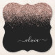 Black and Rose Gold - Blush Pink Sparkle Glitter Script Monogram Name Paper Coasters. This makes the perfect graduation, birthday, wedding, bridal shower, anniversary, baby shower or bachelorette party gift for someone that loves glam luxury and chic styles.