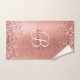 Rose Gold Brushed Metal Glitter Monogram Name Bath Towel Set