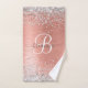 Rose Gold Brushed Metal Glitter Monogram Name Bath Towel Set