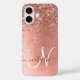 Rose Gold Brushed Metal Glitter Monogram Name Case-Mate iPhone Case