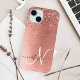 Rose Gold Brushed Metal Glitter Monogram Name Case-Mate iPhone Case