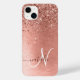 Rose Gold Brushed Metal Glitter Monogram Name Case-Mate iPhone Case