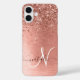 Rose Gold Brushed Metal Glitter Monogram Name Case-Mate iPhone Case