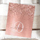 Rose Gold Brushed Metal Glitter Monogram Name Fleece Blanket