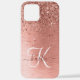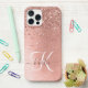 Rose Gold Brushed Metal Glitter Monogram Name iPhone Case