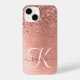 Rose Gold Brushed Metal Glitter Monogram Name iPhone Case