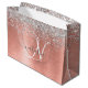 Rose Gold Brushed Metal Glitter Monogram Name Large Gift Bag
