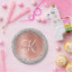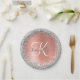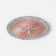Rose Gold Brushed Metal Glitter Monogram Name Paper Plate