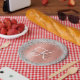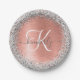 Easily personalise this trendy chic paper plate design featuring pretty silver sparkling glitter on a rose gold brushed metallic background.