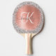 Easily personalise this trendy chic ping pong paddle design featuring pretty silver sparkling faux glitter on a rose gold brushed metallic background.